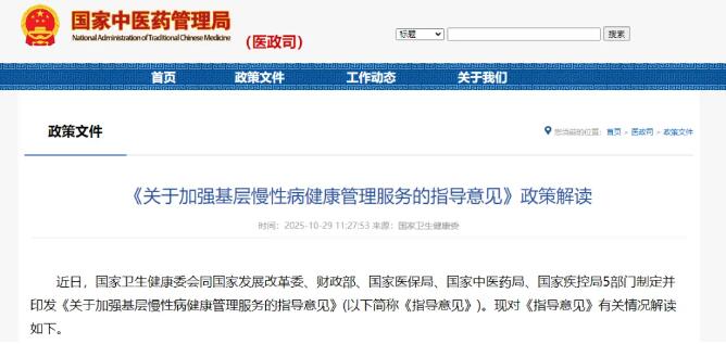 近日,国家卫生健康委等六部门联合印发了《关于加强基层慢性病健康管理服务的指导意见》。文件聚焦高血压、2型糖尿病、慢阻肺等常见慢性疾病,强调要在基层提供系统、连续、可及的健康服务,让居民在家门口就能获得专业管理。
