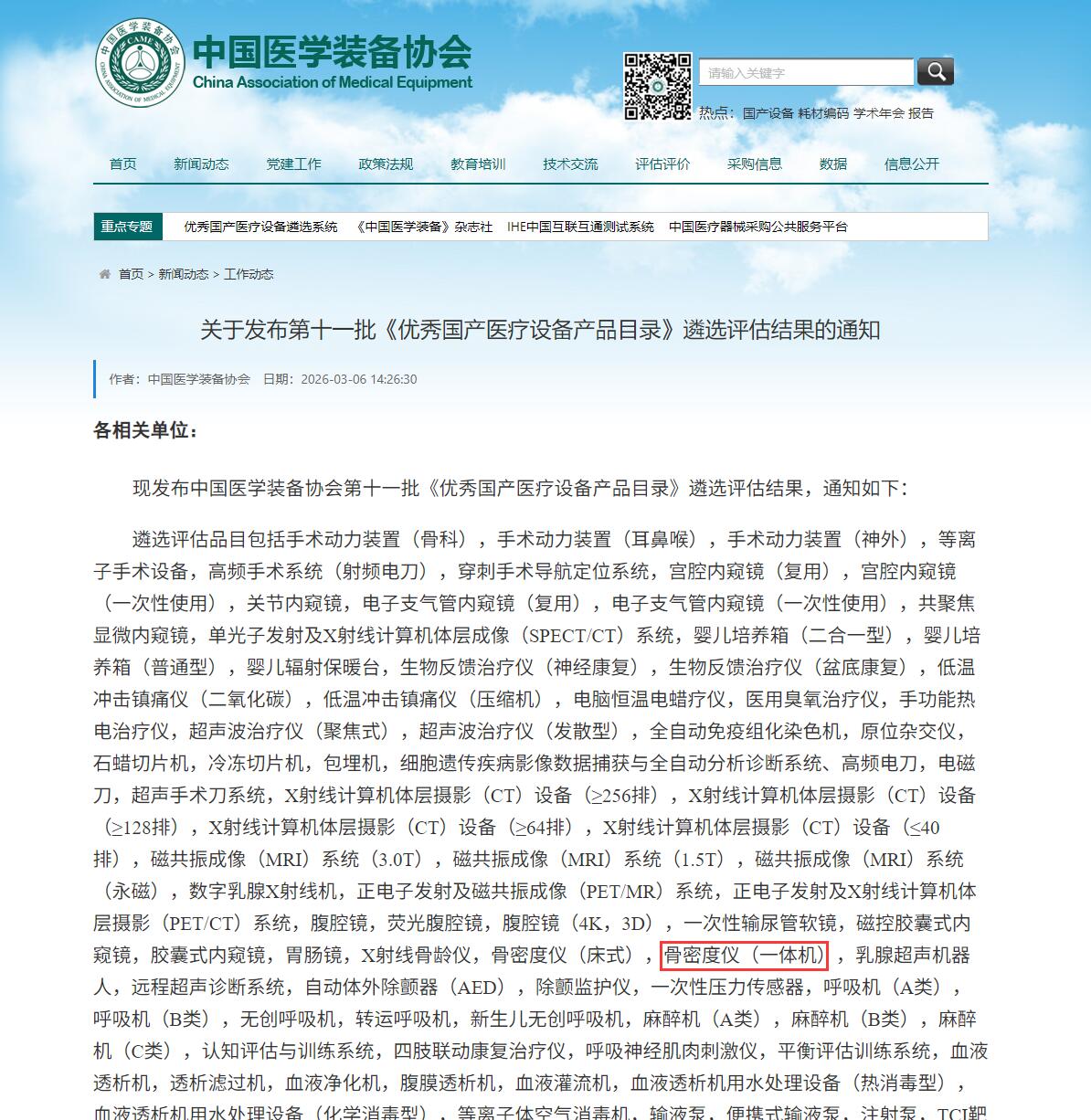该目录由中国医学装备协会评选,旨在遴选技术成熟、性能稳定、应用价值突出的国产医疗设备产品,入选产品在行业内具有较高参考价值与示范意义。